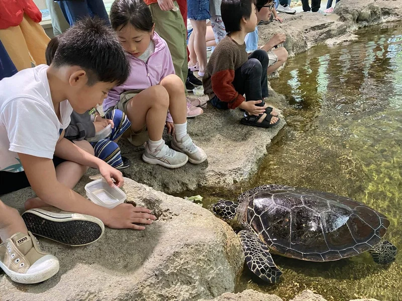 そして今回はさらに亀に餌やりができる水族館も